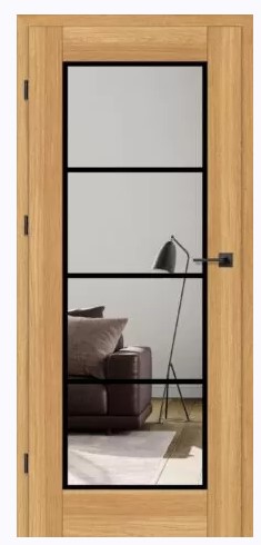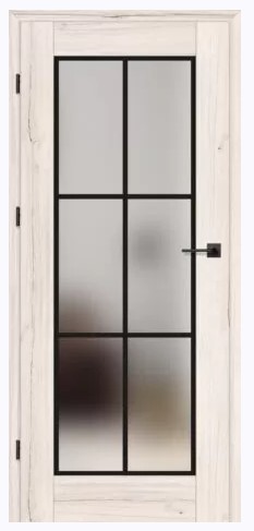 a) falcové dveře (s polodrážkou) – tři šroubované závěsy – zámek ve verzi: BB, WC, FAB – kliku – zárubeň