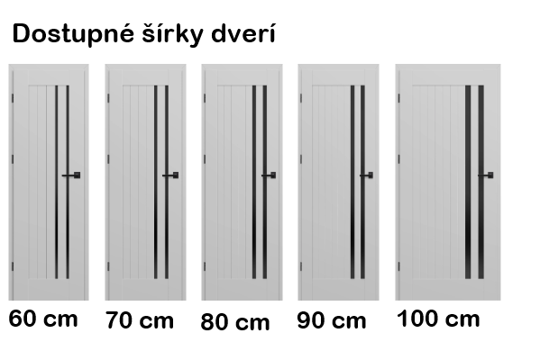 Dveře na obrázku jsou znázorněny v šířce 80 cm. U jiných šířek jsou výrazné rozdíly v proporcích skel. V případě zájmu o vizualizaci dveří v jiné šířce nás neváhejte kontaktovat!