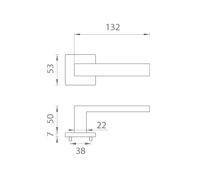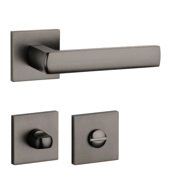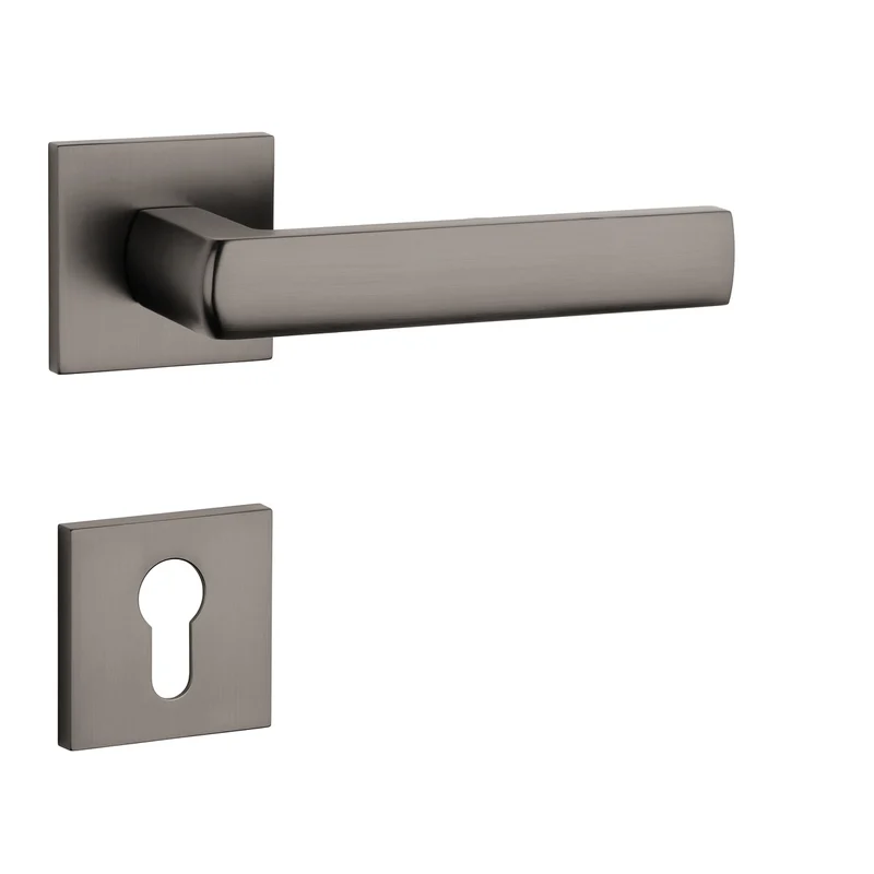 Rozetová klika na interiérové dveře s hranatou rozetou je vyrobena z materiálů vysoké kvality – zamak a je povrchově upravena. Minimalistický design rozety s vysokou stabilitou kliky na dveřích působí jemně, a tím ponechává prostor pro vyniknutí designu samotné kliky.