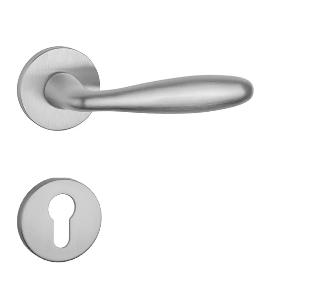 Rozetová klika na interiérové dveře s kulatou rozetou je vyrobena z materiálů vysoké kvality – zamak a je povrchově upravena. Rozeta má průměr 53 mm a tloušťku pouze 7 mm. Minimalistický design rozety s vysokou stabilitou kliky na dveřích působí jemně, a tím ponechává prostor pro vyniknutí designu samotné kliky.
