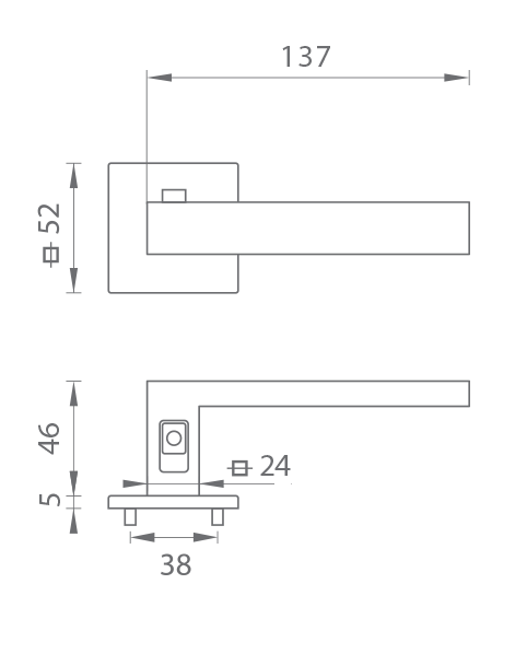 Rozetová klika na interiérové dveře s hranatou rozetou je vyrobena z materiálů vysoké kvality – zamak a je povrchově upravena.