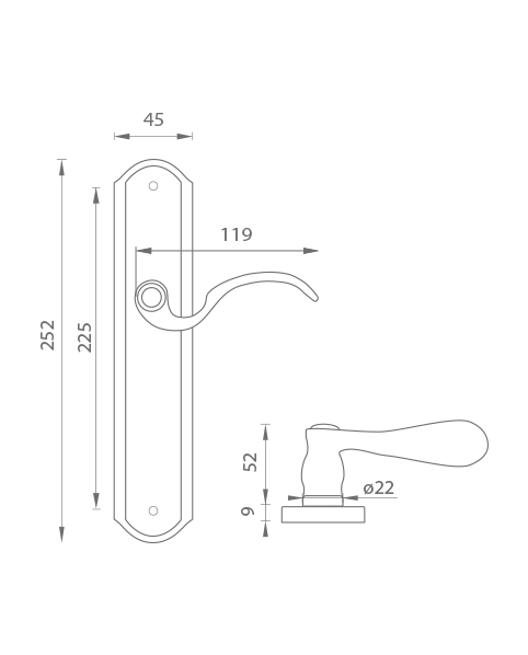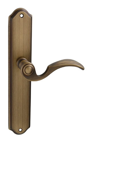 Štítová klika na interiérové dveře s rustikálním štítem je vyrobena z materiálů vysoké kvality – mosaz a je povrchově upravena. Klika obsahuje vratný mechanismus.