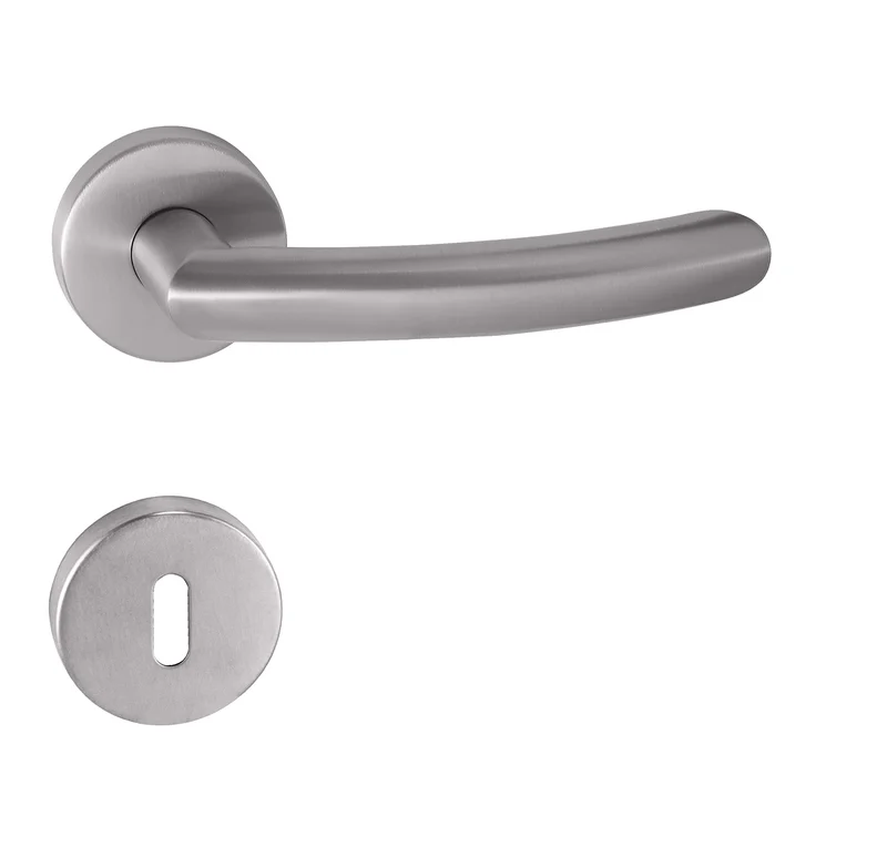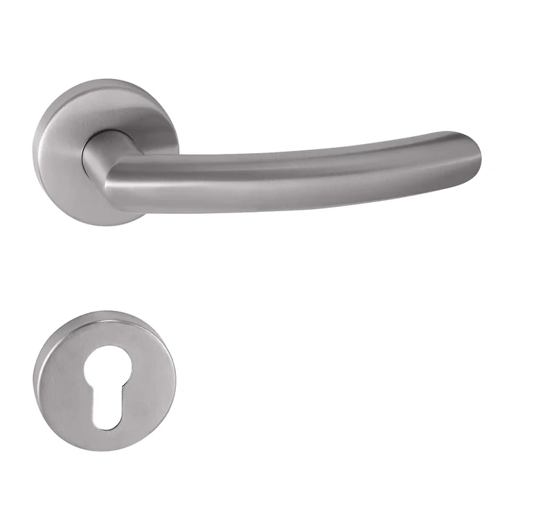 Rozetová klika na interiérové dveře s kulatou rozetou je vyrobena z vysoce kvalitní nerezové oceli a je povrchově upravena. Rozeta má průměr 52 mm a standardní tloušťku 11 mm.