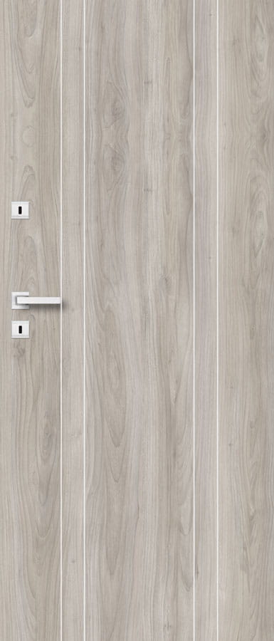 Dveře obsahují ozdobné hliníkové pásky.