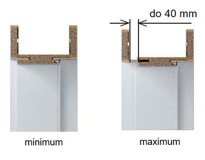 Rám dveří je dostupný v různých šířkách, což umožňuje jeho přizpůsobení tloušťce stěny a zjednodušuje instalaci. Je vhodný jak pro dveře s rabatem, tak pro zpětné dveře, což umožňuje flexibilitu při výběru dveří.